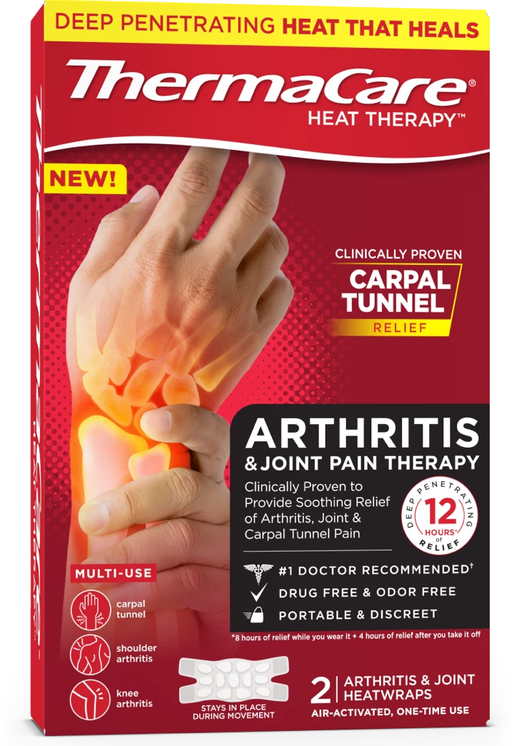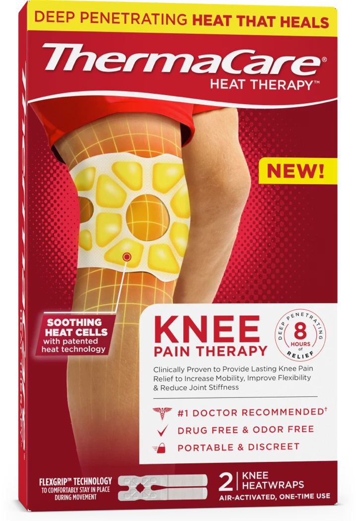 经临床验证,ThermaCare 膝盖疼痛治疗热敷带可增加血流量,并在疼痛源头提供深层渗透性疼痛缓解。