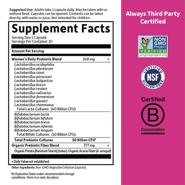 Perlmutter 博士专为女性研发了这款独特的配方,富含由多种耐胃酸和胆汁的菌株制成的有益益生菌,有助于支持女性的消化系统和免疫系统健康。