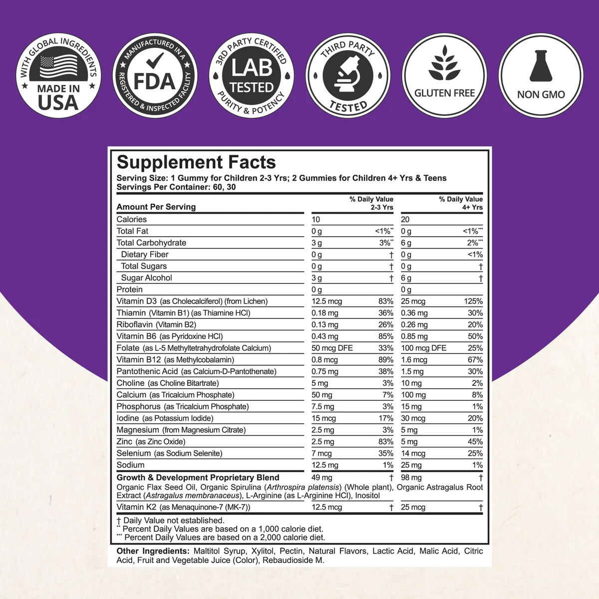 每份富含 20 多种必需营养素,可支持骨骼和牙齿的生长、大脑和眼睛的健康,并促进免疫系统和整体健康成长的活力。