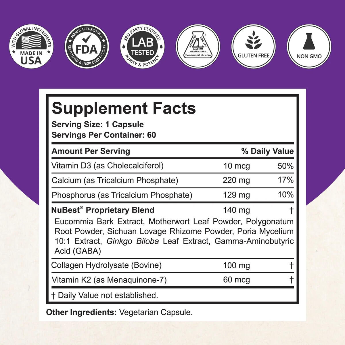蕴含 350 毫克有机南非醉茄和有机阿拉斯加蓝莓,有助于缓解压力,放松心情