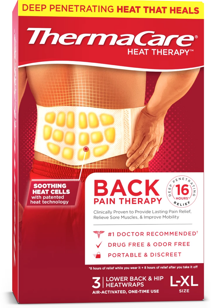 ThermaCare 颈部和肩部热敷带采用先进的设计,可适应您的动作,提供真正的持续热量。